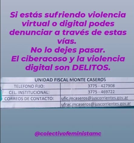 El Colectivo Feminista de Monte Caseros aseguró que ya logró acceder a uno de los grupos y reportar el enlace, pero advirtió que continuarán investigando para identificar a los responsables de la creación y administración de estos espacios que atentan contra la integridad y privacidad de las mujeres.