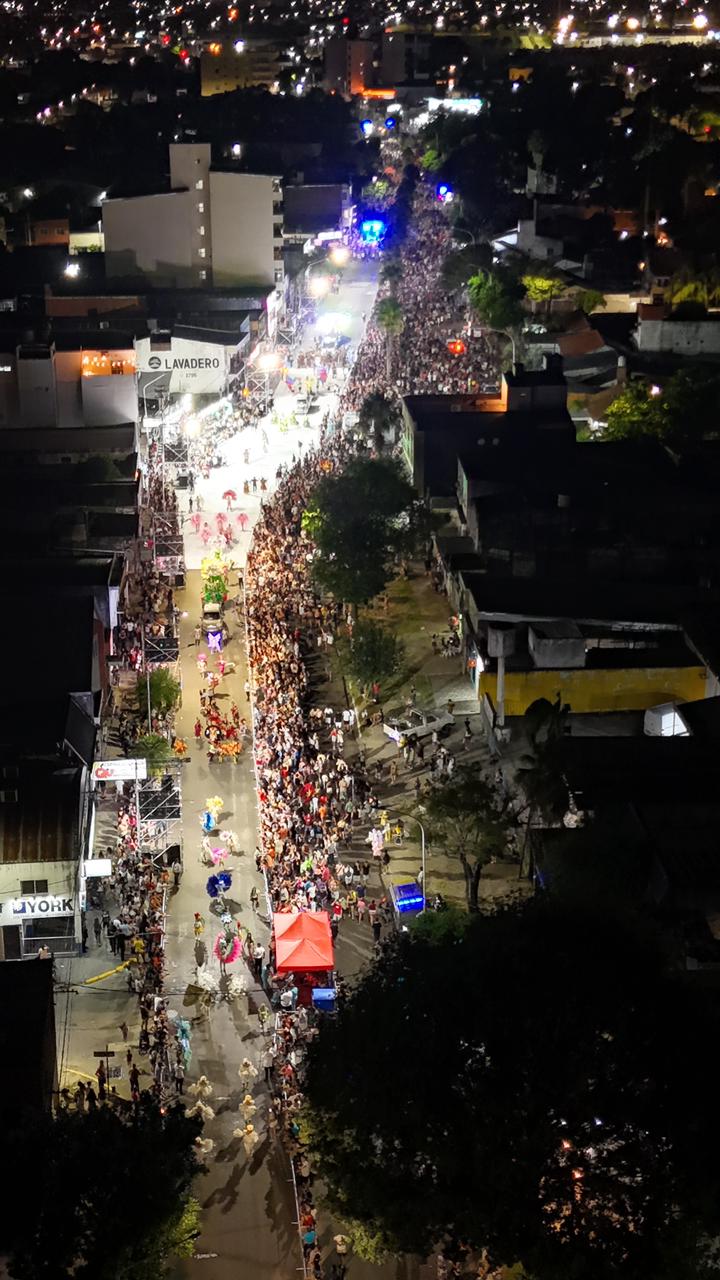 Puntual, cerca de las 21:00 horas, y con la presencia de autoridades provinciales, municipales e invitados especiales, comenzó el desfile. El «cosódromo itinerante», una estructura efímera pero llena de vida, recibió el paso de 25 agrupaciones –entre comparsas, conjuntos musicales y números humorísticos– que desfilaron por el tramo de la avenida Gobernador Ruiz, entre México y Vélez Sarsfield.
