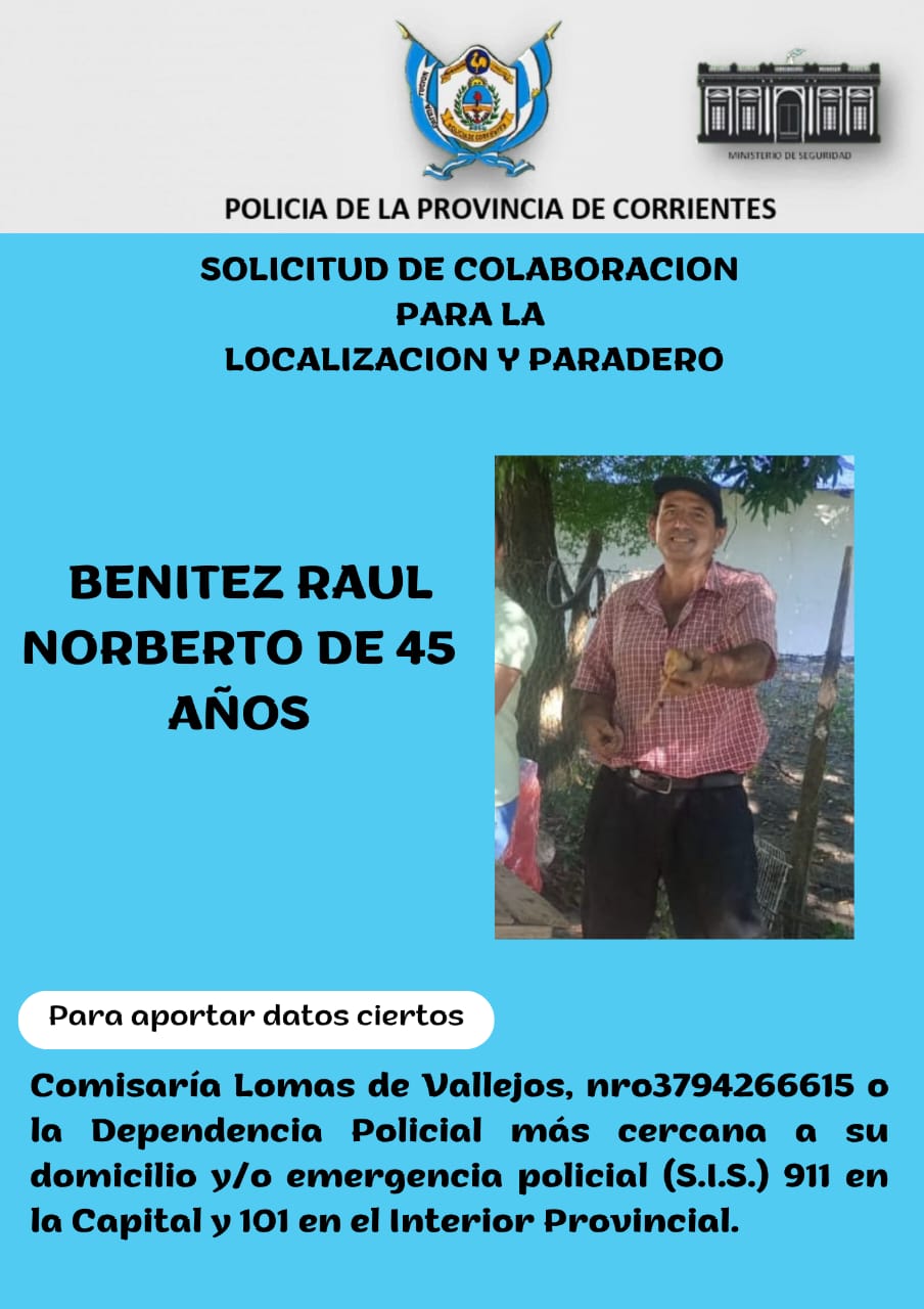 Lomas de Vallejos, 17 de julio de 2025 – En una trágica culminación a las intensas labores de búsqueda desplegadas por la Policía, fue encontrado sin vida Raúl Norberto Benítez (45), un hombre con antecedentes de epilepsia que llevaba desaparecido desde el 16 de julio, cuando fue visto por última vez circulando en su motocicleta.