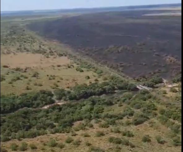 Sobrevuelo e imagenes de la zona afectada en el día de ayer en Campo General Ávalos, hasta el momento sin novedad. Área de prensa A.B.V.M.C.