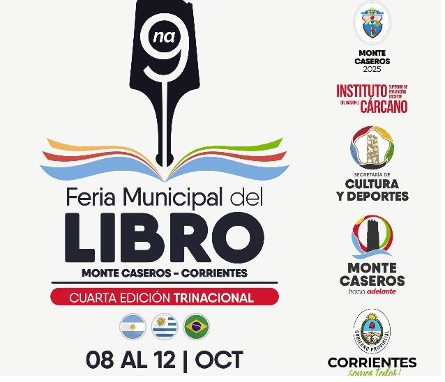 Monte Caseros, 2 octubre de 2024. – Con la promesa de ser un encuentro federal e integrador, del 8 al 12 de octubre se desarrollará la 9ª edición de la Feria Municipal del Libro de Monte Caseros. Bajo una convocatoria Trinacional que refleja la identidad de la región, el evento ofrecerá entrada libre y gratuita para todo público.