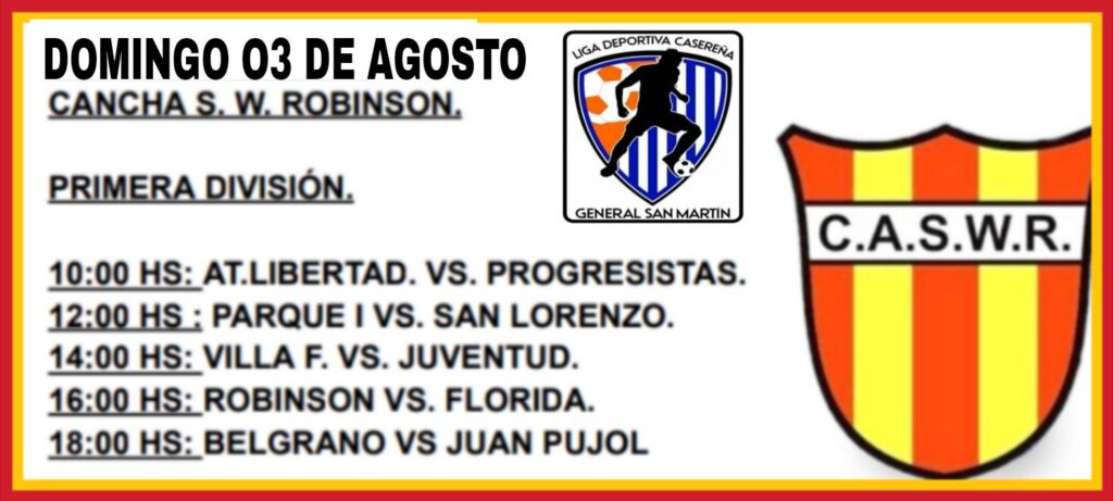 Monte Caseros, 30 de julio de 2025 — Tras la reunión celebrada el pasado lunes, los dirigentes de la Liga Casereña San Martín confirmaron la reprogramación de los encuentros correspondientes a la fecha que fue suspendida el fin de semana anterior. Los partidos se disputarán este sábado 2 y domingo 3 de agosto en las canchas designadas, manteniendo los horarios y enfrentamientos originales.