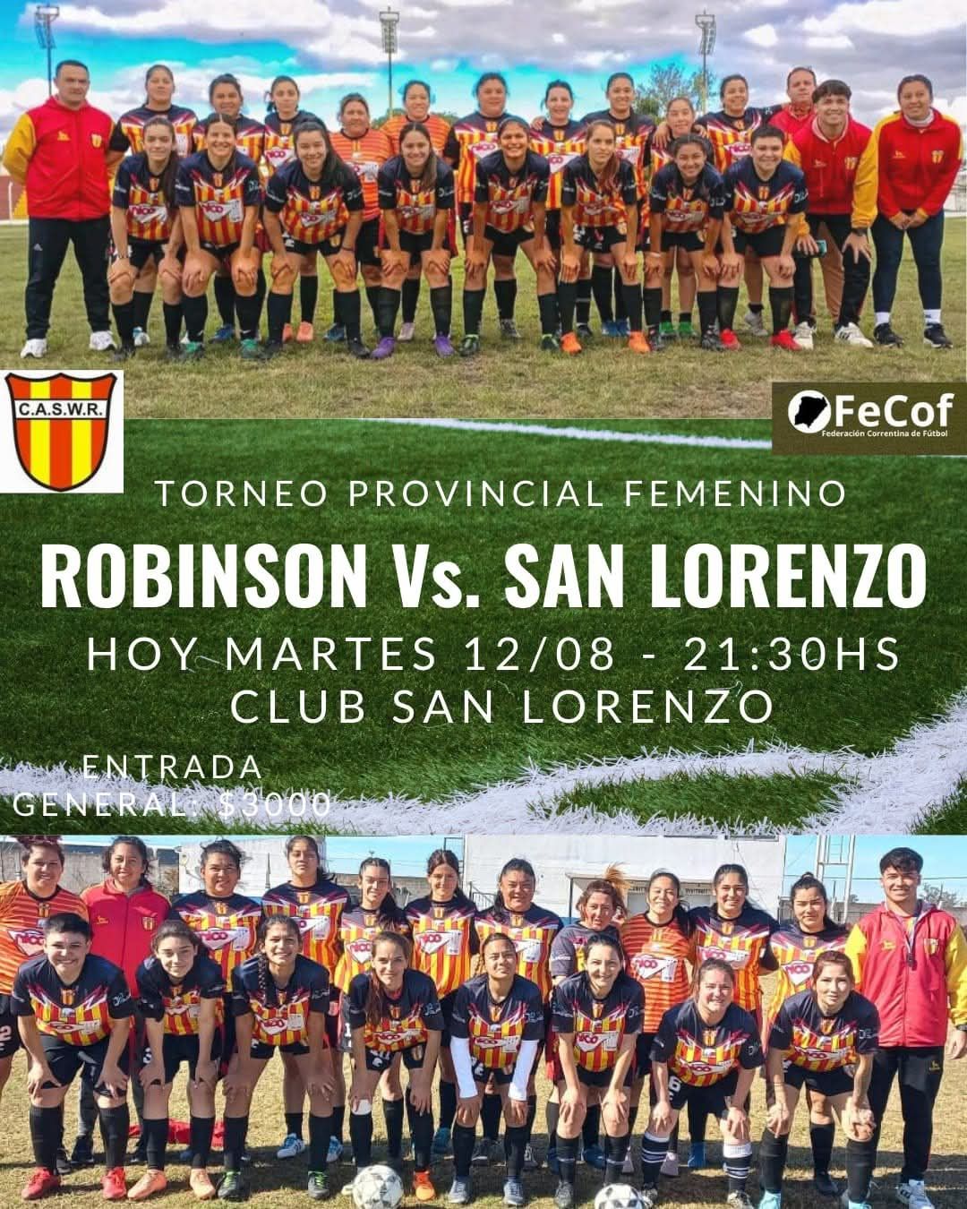 Monte Caseros, 12 de agosto – Esta noche a las 21:30 hs, se disputará un partido clave en el Torneo Provincial de Clubes de Primera División Femenina de la Zona 1. En el Club San Lorenzo de Monte Caseros, se enfrentarán a su clásico rival el Club Samuel W. Robinson. En un duelo que definirá el segundo clasificado a la siguiente fase del certamen.