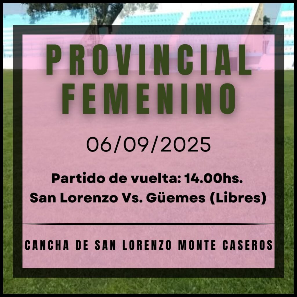 Monte Caseros, 4 de septiembre de 2025. – Este sábado 6 de septiembre, el Estadio del Club Atletico San Lorenzo de Monte Caseros será el escenario de uno de los duelos clave de los octavos de final del Torneo Provincial de Clubes 2025, categoría Primera División Femenina. Desde las 14 horas, el local se medirá contra Güemes de Paso de los Libres en el partido de vuelta, luego de que el encuentro de ida finalizará con un empate 0-0 en suelo libreño.
