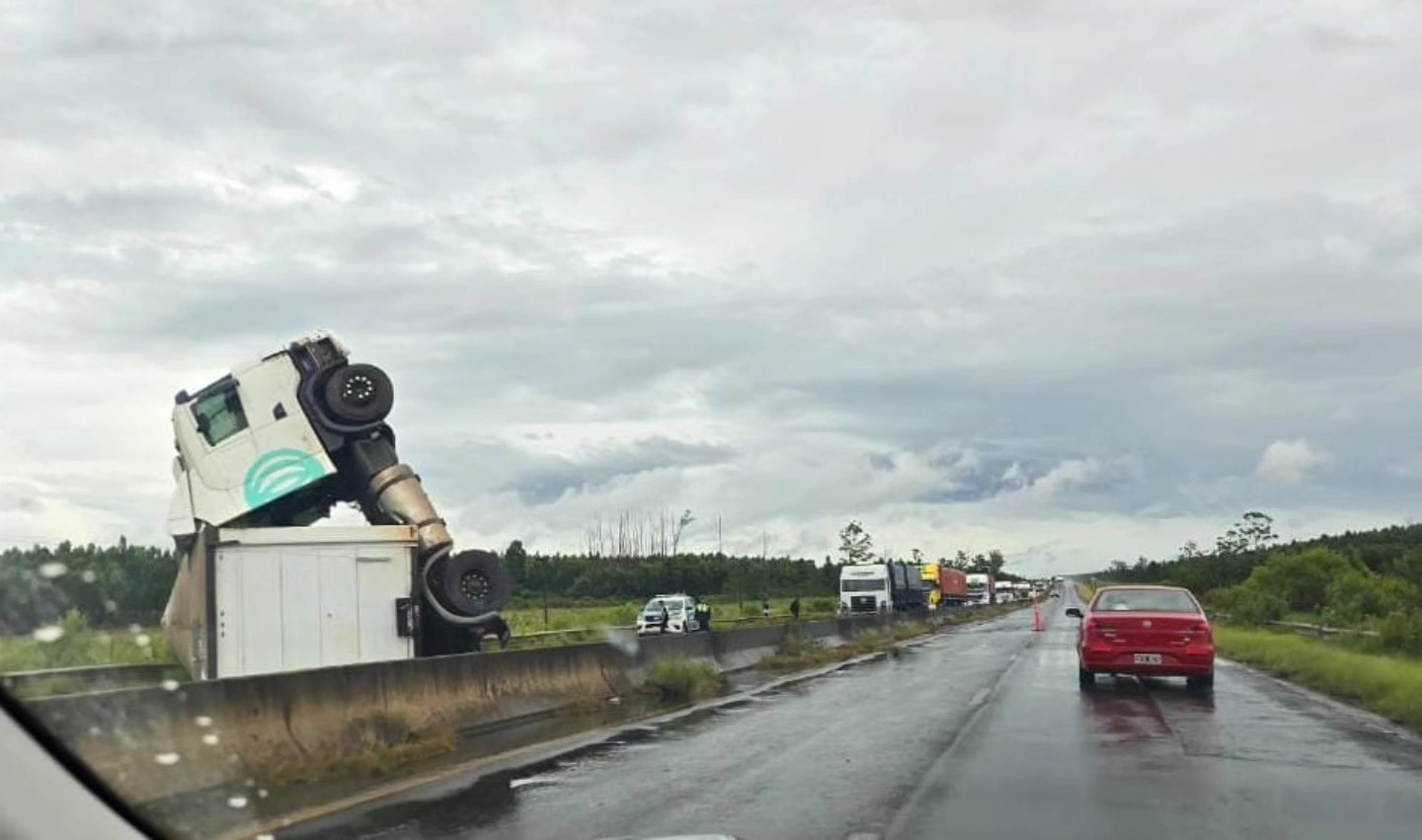 Un camión de carga volcó esta mañana en la Autovía 14, provocando el corte total del sentido sur-norte a la altura del kilómetro 483. El accidente, registrado a las 09:35 horas, se produjo en un contexto de lluvias copiosas que afectaron la región y puso otra vez en el centro de la escena el crítico estado de la cinta asfáltica, una preocupación recurrente cada vez que se intensifican las precipitaciones.