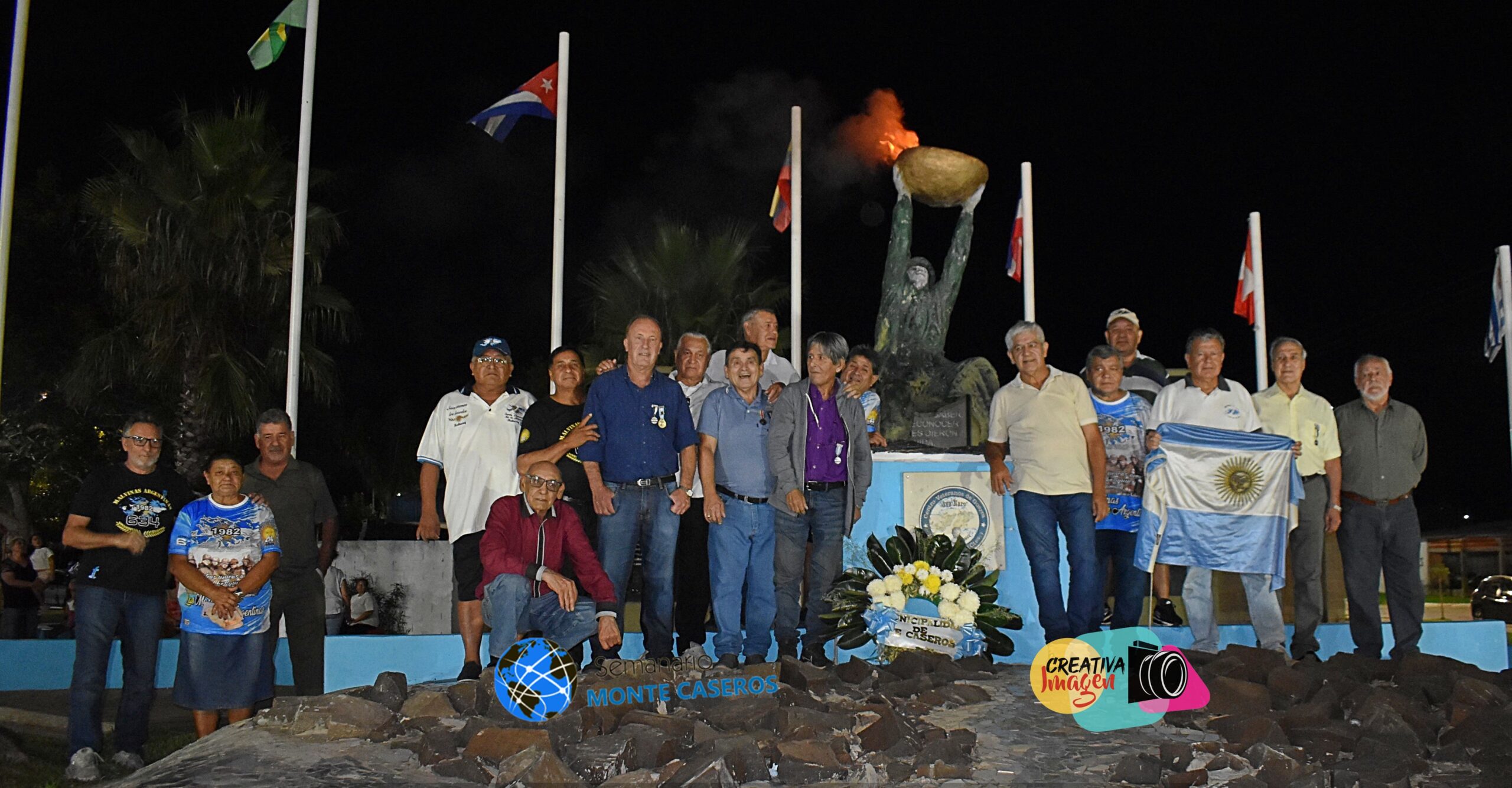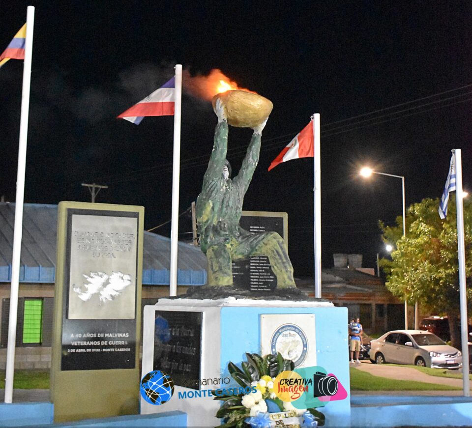 historia y corazón encendido. Mientras la luna llena se ponia en lo mas alto de la Plazoleta de los Ex Combatientes comenzó a llenarse de una marea humana que desafió el olvido. Cientos de miles como en todo el país, pero aquí en Monte Caseros puntualmente, mas de un puñado de valientes que se niegan a morir dos veces: los veteranos de Malvinas.